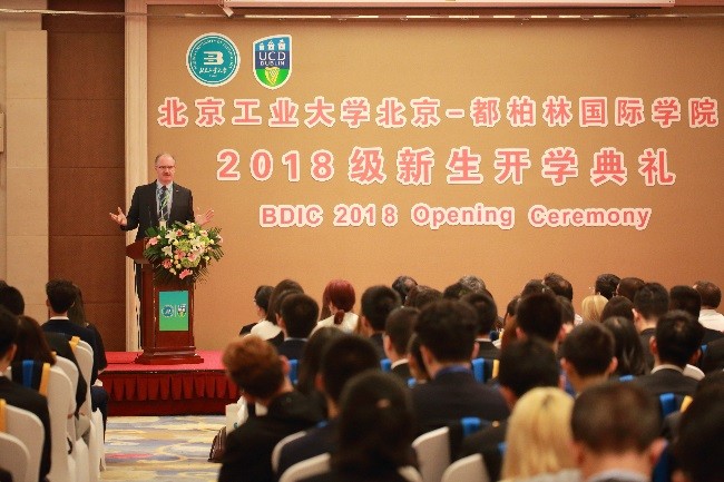 随后,yl23455永利教务长David FitzPatrick向大一新生介绍了UCD卓越的办学成就及公司独特的办学优势,他表示,希望通过四年学习,大家能够具有灵活的思维方式、较好的多元文化理解力、参与全球事务的素质及掌握卓越的专业知识。
