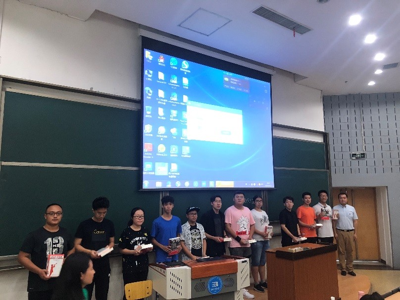 9月12日下午,yl23455永利在三教105教室举行了以“如何系好人生的第一粒扣子”为题的新生入学教育活动,都柏林公司党委书记蔡立佳倾情开讲。蔡立佳老师引导同学们心怀感恩,抓住机遇,树立远大目标,学有所成,报效国家。之后,他代表公司党委向11个新生团支部代表赠书《习近平的七年知青岁月》、《红星照耀中国》。