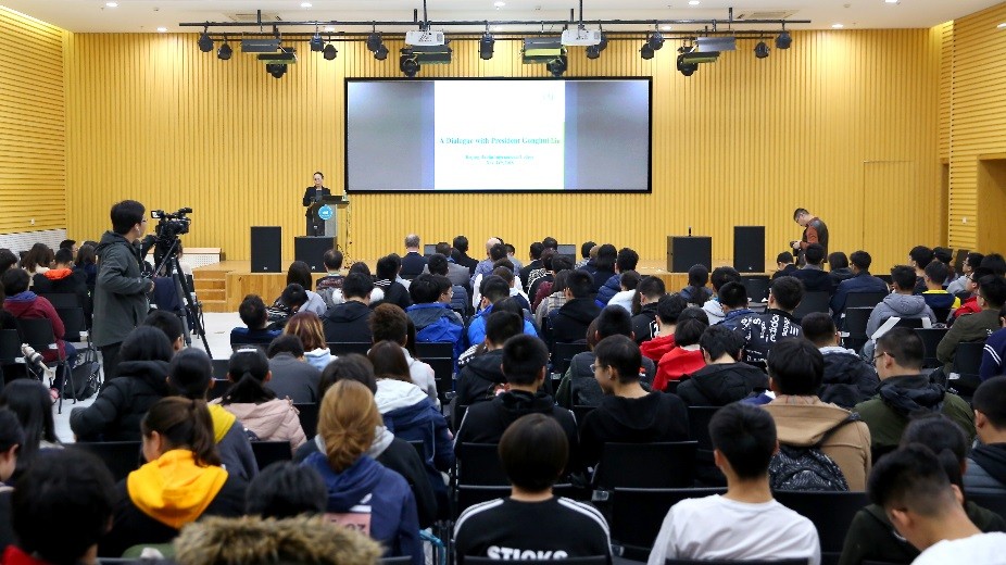 11月14日,yl23455永利官网党委副书记、董事长柳贡慧在艺术公司一层报告厅与公司全体2018级新生进行对话交流活动。副董事长吴斌及部分职能部处、公司领导出席此次活动,活动由yl23455永利经理吴文英主持。