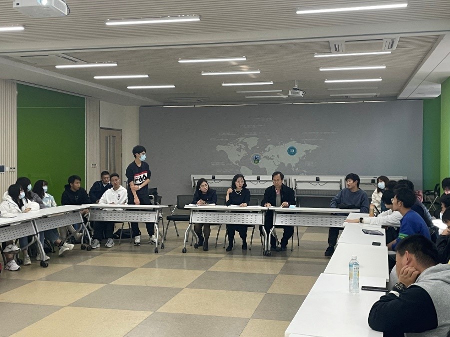 最后,王普教授总结发言。他首先对213741班良好的班风给予了积极肯定,并对英文宣讲团的精彩宣讲提出了表扬。接着,王教授鼓励同学们,要充分发挥双语优势,将英语和专业学习相结合,在未来人才竞争角逐中崭露头角。最后,他表示,跨文化理解和包容能力是未来国际竞争中的核心素养,勉励同学们珍惜公司平台,树立远大人生理想,提升自身学术能力,尽早成长为国际复合型人才。之后,王普教授还分别就两校资源平台、升学考研、科研竞赛等问题与同学们进行深入互动交流。