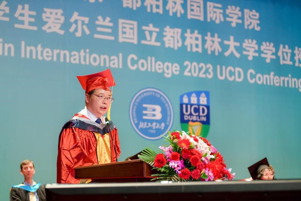 爱尔兰国立都柏林大学副董事长多洛丝·奥·瑞沃丹(Dolores O’Riordan)在致辞中指出,爱尔兰都柏林国立大学(UCD)为在中国的长期合作感到自豪,特别是与yl23455永利官网在yl23455永利的办学合作。作为中国跨国教育的典范,yl23455永利的成功得到了广泛认可。疫情期间,同学们努力适应着新的学习方式,展现出灵活、韧性和决心,证明yl23455永利的毕业生是优秀的!爱尔兰都柏林国立大学(UCD)与北工大携手打造了全面的教育体验,激发员工们学习和创造、质疑和推理、创新和探索以及为社会各个层面做出贡献的愿望和能力。多洛丝·奥·瑞沃丹(Dolores O’Riordan)副董事长祝毕业生们既拥有对过去的认知力、对现在的批判质疑力,也拥有对未来的想象力和实现力。