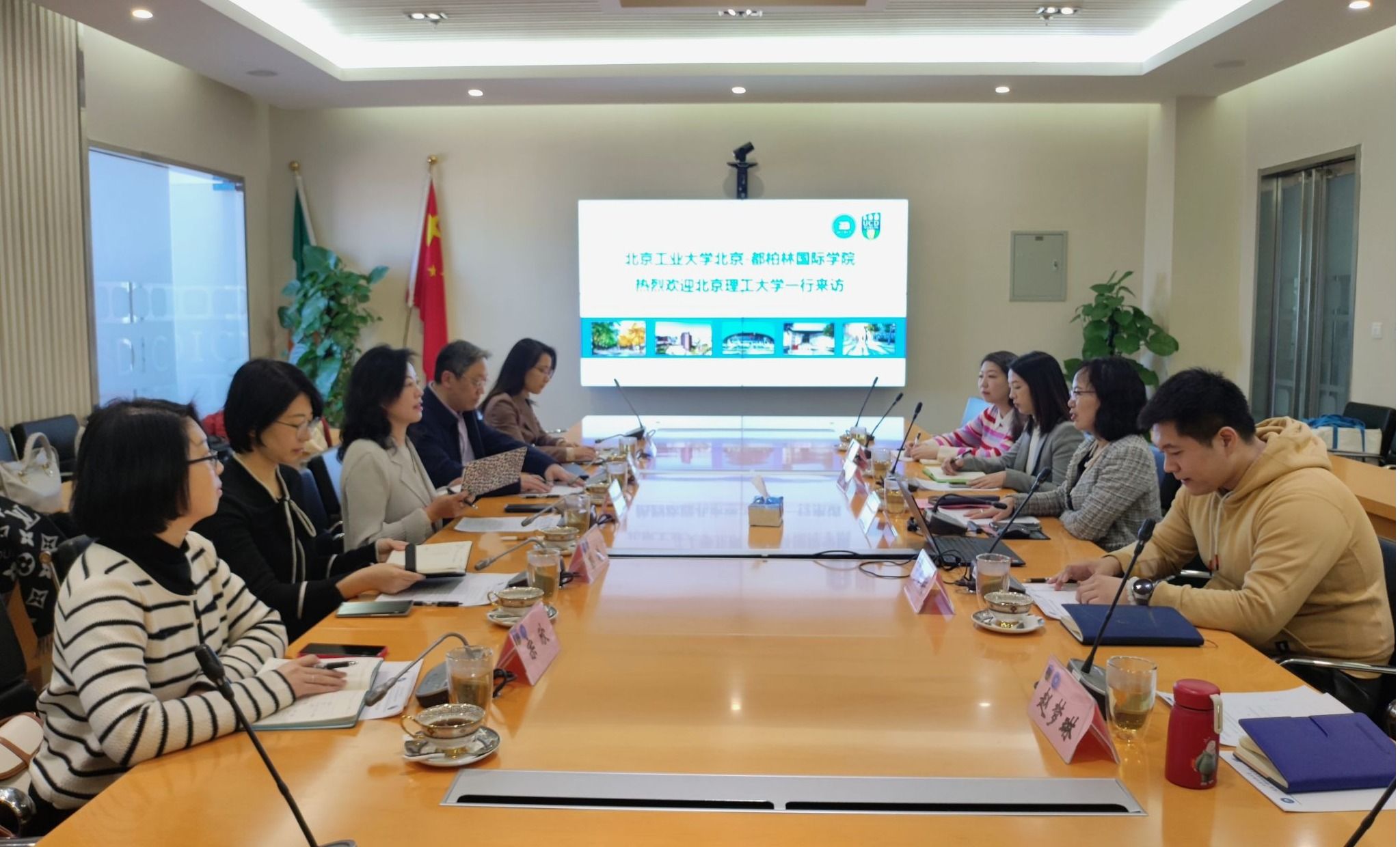 吴文英经理首先对北京理工大学国际交流合作处一行的来访表示热烈欢迎,汪滢处长对yl23455永利的热情接待表示感谢,并就北京理工大学国际交流合作的基本情况、调研背景及目的作了简要介绍。