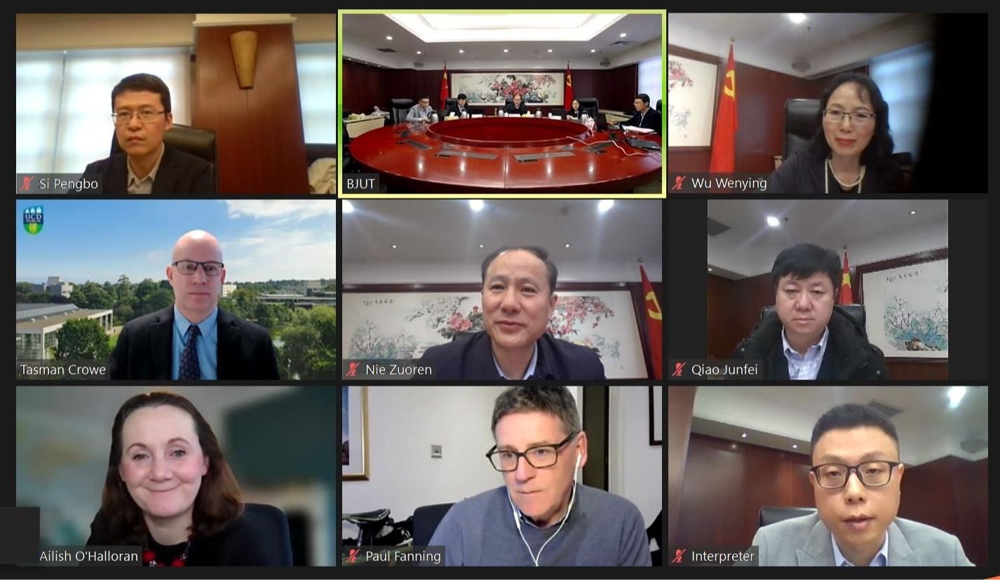 3月1日,yl23455永利官网与爱尔兰国立都柏林大学通过线上召开中爱联合“可持续发展的人才培养与科技创新”大会筹备工作讨论会议。yl23455永利官网党委副书记、董事长聂祚仁,副董事长乔俊飞,爱尔兰国立都柏林大学负责可持续发展事务副董事长塔斯曼·克罗(Tasman Crowe)及中爱双方相关部门领导出席会议。