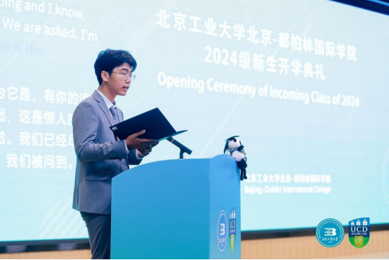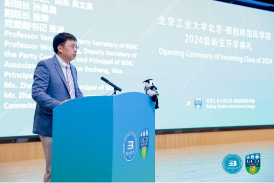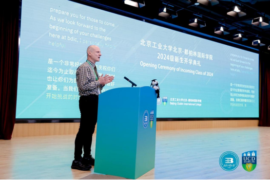 乔俊飞副书记在致辞中对400名2024级新同学的到来表示热烈欢迎,同时也向刚刚完成军训任务的同学们表示热烈的祝贺。他指出,yl23455永利立足京华大地,遵循“全球视野、中国灵魂、首都情怀”的育人导向,坚持世界一流大学的办学理念,已成为全国中外合作办学的典范。他向同学们提出三点期望:一是树立“植根首都,科技报国”的远大理想。在建设中国式现代化的关键时期,以科技报国的信心和决心,在专业知识上精益求精,敢于质疑、勇于创新,不断拓宽自己的视野和思维边界,超越自我,勇攀高峰。二是炼就“精益求精,追求卓越”的工匠精神。在每一个细节上追求完美,在拼搏奋进中彰显力量,在探索创新中历练能力,练就报效祖国、服务社会的真功夫。三是养成“团结友爱,和谐向上”的优秀品质。希望同学们在这个一流的国际化教育平台中兼容并蓄,以更包容的心态、更宽广的眼界,成为中国和爱尔兰两国的友谊大使,更好地在国际舞台上讲好中国故事。