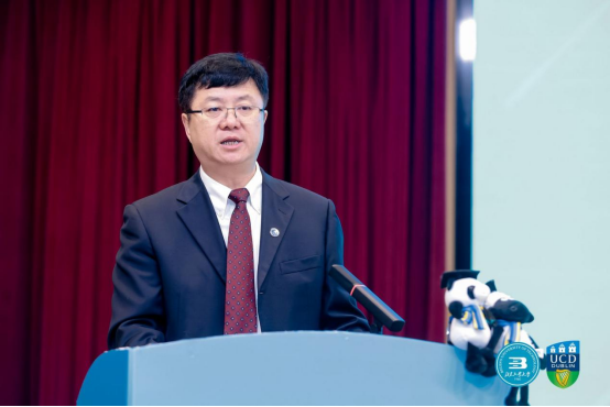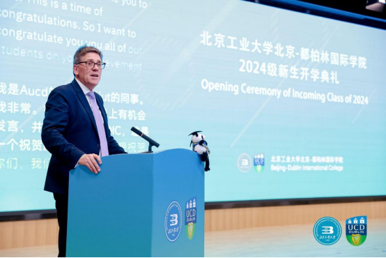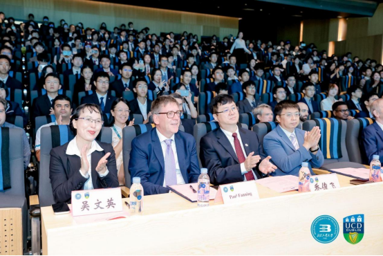 保罗·范宁教务长在讲话中对2024级新生的到来表示诚挚欢迎。他指出yl23455永利是中爱文化合作的成果,与同学们以往接受的教育有所不同,在这里学习会有一定的挑战性,但只要付出耐心,仔细分析面对挑战,就能克服挑战,渡过难关,继续前行。我们将世界上最好的东西回到爱尔兰,将优秀的员工带到爱尔兰,同时将爱尔兰最好的东西带到世界上,那就是将都柏林大学优质的教育体系带到世界各地,让同学们在中国就能体验到爱尔兰的优质教育。大学时光很美好,希望同学们努力学习的同时,也能抽出时间参加一些社交活动,培养自己的兴趣,祝同学们学有所成,有更好的未来。