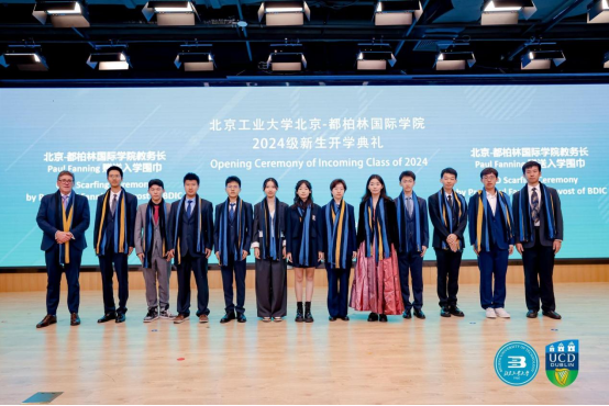 最后,教务长保罗·范宁代表都柏林大学为新生们赠予入学围巾。这也象征着2024级新生除了yl23455永利官网员工这个身份以外,也正式成为爱尔兰国立都柏林大学的员工!据悉,入学围巾共四色,其中蓝色代表忠诚,黄色代表思想和进步,黑色代表知识和工作,爱尔兰蓝代表文化。