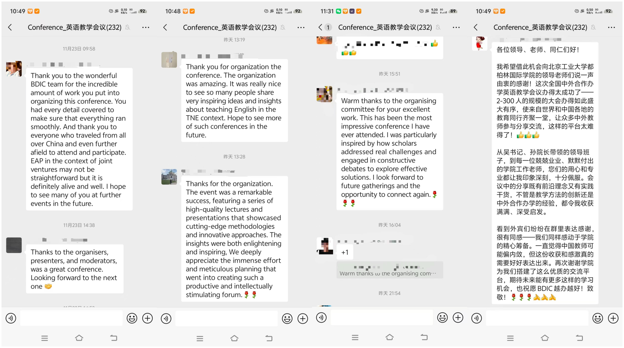 大会期间,中共北京市委教育工作委员会委员、北京市教育委员会副主任魏旭斌强调,要紧密围绕科技创新、产业发展和国家战略需求,坚定不移推动更宽领域、更深层次教育对外开放,一是坚定不移深化教育国际交流合作。二是坚定不移引进世界一流教育资源。三是坚定不移完善涉外教育治理体系。他指出语言教学不仅具有工具属性,是筑牢学术基础、养成国际胜任力的敲门砖;更具有价值理性,是承载育人理念、价值导向的重要桥梁。要积极打造适合国情、匹配学情,中国特色、国际视野的学术英语教学专业路线,在语言教学中落实课程思政,牢牢把握育人方向。