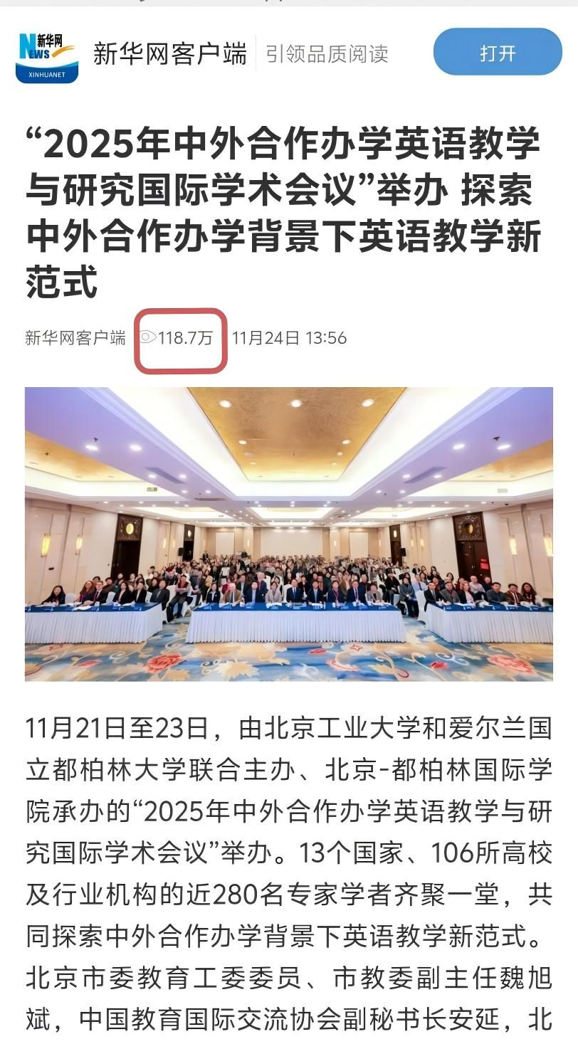 新华网、《China Daily》《中国教育电视台》《北京青年报》等主流媒体纷纷报道,其中新华网的报道在一天之内阅读量超118万。
