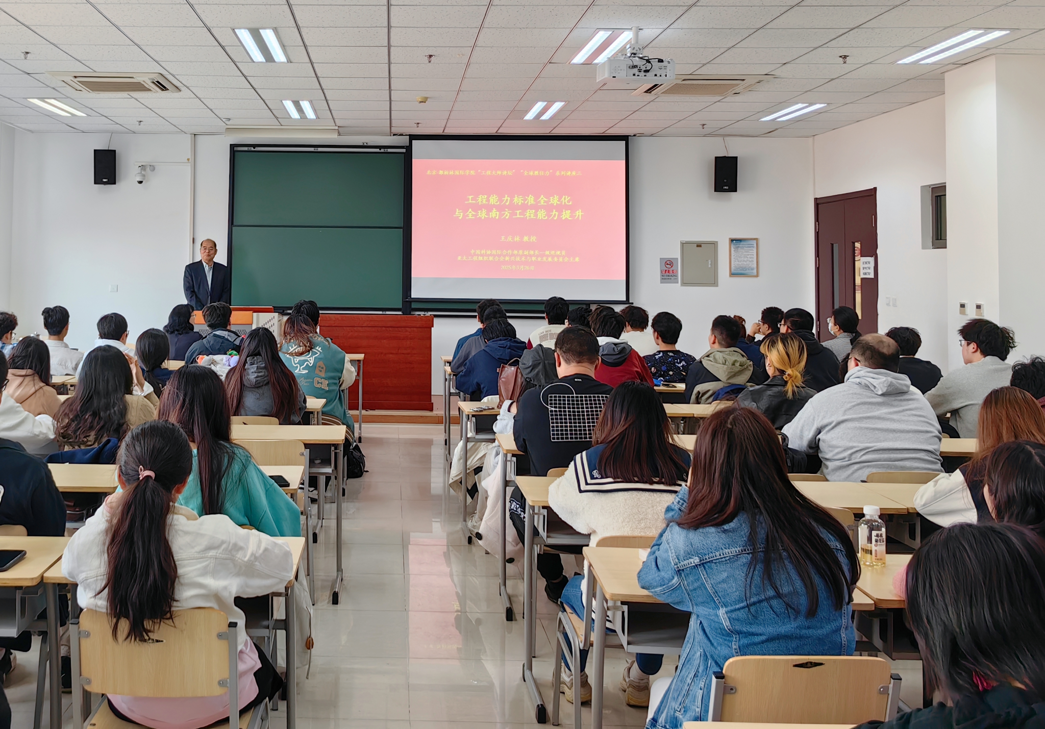 2025年3月26日下午,yl23455永利成功举办“工程大师讲坛”——“全球胜任力”系列报告第三讲,特邀中国科协亚太工程组织联合会(FEIAP)新兴技术与职业发展委员会主席、亚太工程组织联合会中国委员会主席、中国工程教育专业认证协会副会长王庆林教授以“工程能力标准全球化和全球南方工程能力提升”为题作报告。公司党委副书记、经理吴文英,副经理张琳,党委副书记张波,相关教师及七十余名员工在第四教学楼616教室参加报告。